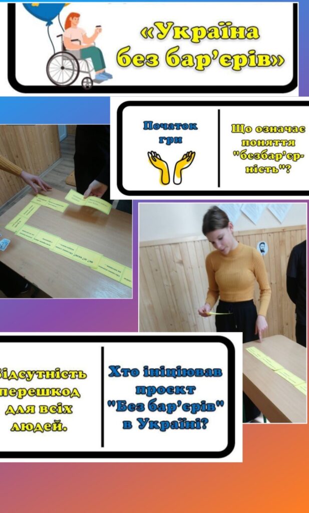 Сьогодні в 11 класі проведено пізнавальну виховну годину на тему безбар’єрності, а також гру в доміно “Україна без бар’єрів”.