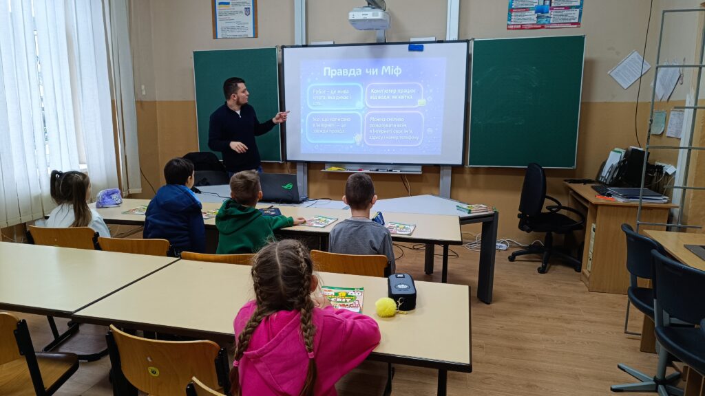 Під час заняття школярі занурилися у світ сучасних технологій та власноруч спробували себе в ролі маленьких дослідників. У доступній формі діти дізналися, що таке робот, алгоритм і код, а також побачили, як проста послідовність дій може приводити до конкретного результату.