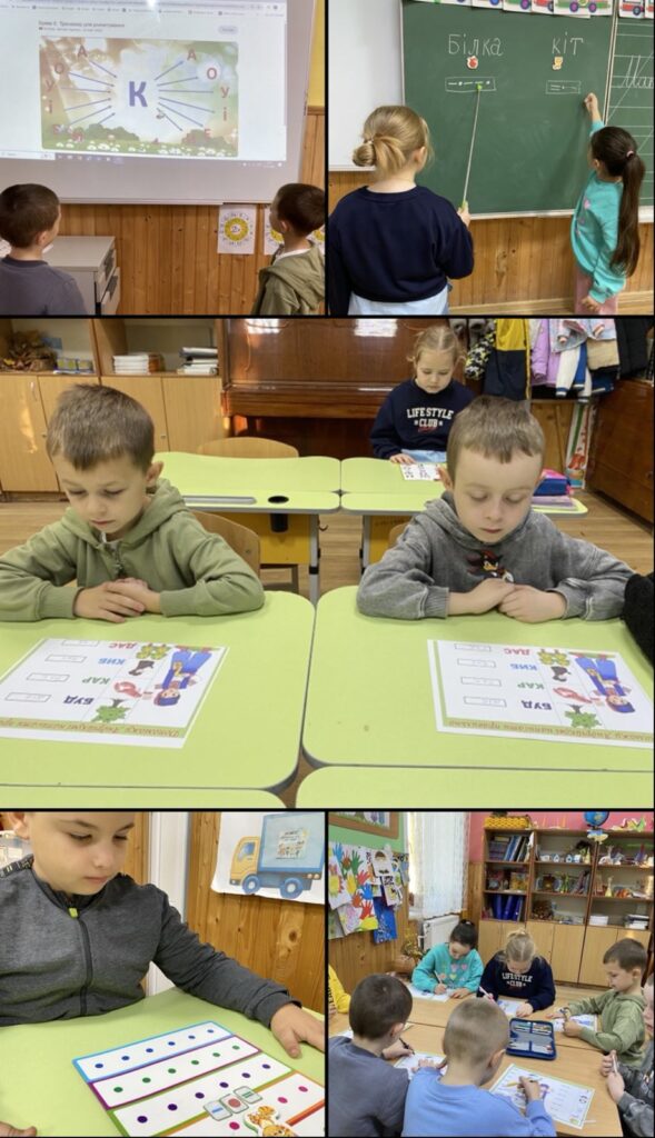 Під час проведення уроку з української мови у 1 класі ( вчитель Томенюк В.Ю.) діти ознайомилися з буквою к («ка»), її звуковим значенням. Маленькі першокласники виконували аналітико-синтетичні та артикуляційно-слухові вправи, в групах грали в гру «Знайди відповідності», «Утвори склад», відгадували загадки та складали звуко-складові моделі слів. А також виконували мовну розминку ( скоромовку та чистомовку), читали слова з Читалочкою хором, ланцюжком у парах.