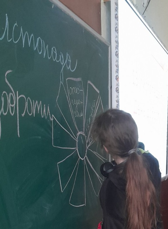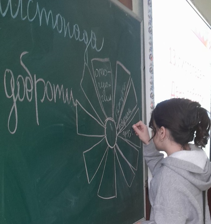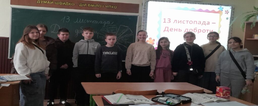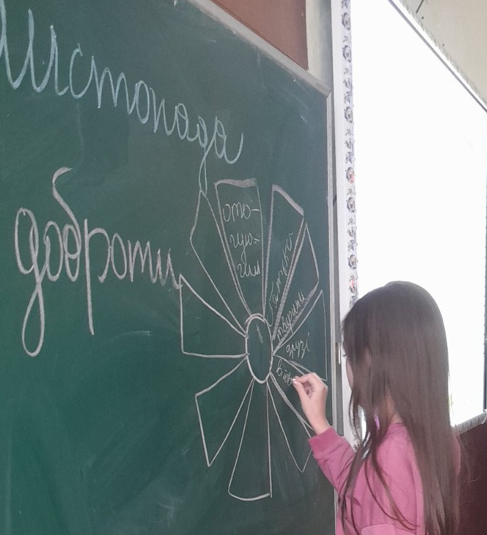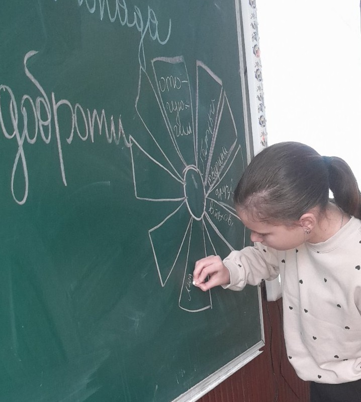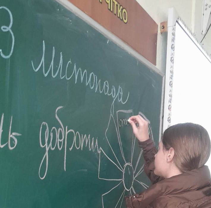 На виховному занятті з елементами тренінгу учні 6 класу (класний керівник Н.Ф.Ласько) ознайомилися з витоками цієї дати, обговорили, кому і навіщо потрібно допомагати та створили Квітку добрих справ.