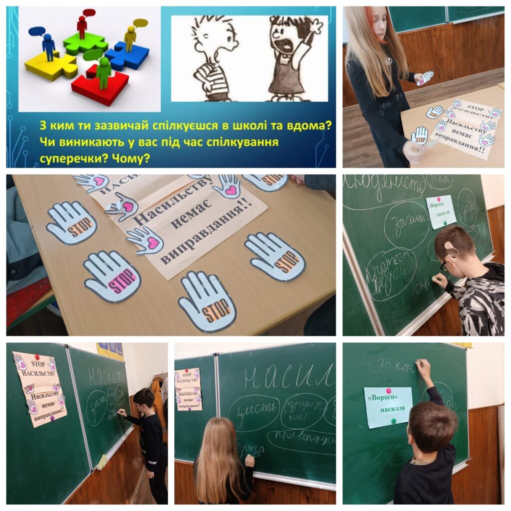 У 5 класі пройшла виховна година “Як протидіяти конфліктам”. Учні обговорювали, чому виникають суперечки та як їх можна вирішити спокійно. Діти вчилися слухати одне одного і висловлювати свої думки ввічливо. Захід допоміг створити дружню та доброзичливу атмосферу в класі.