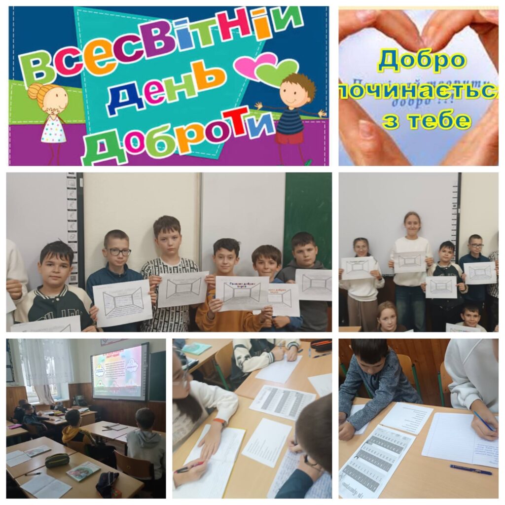 У 5 класі відбулася виховна година, присвячена Всесвітньому дню добра. Учні переглянули тематичне відео, поділилися прикладами своїх добрих вчинків , представивши “Галерею добрих справ”, виконали завдання “Закодовані слова”.