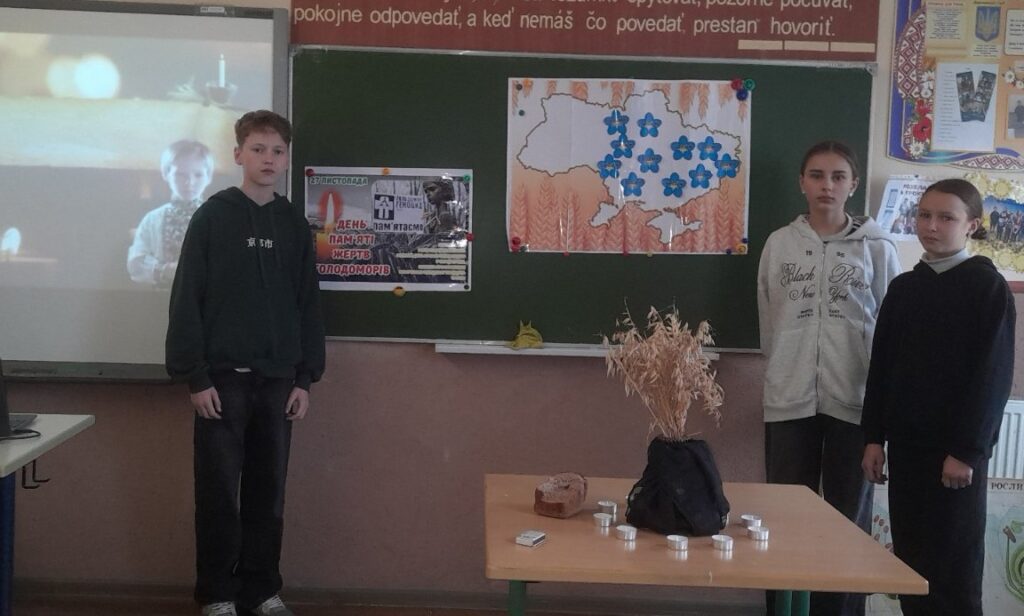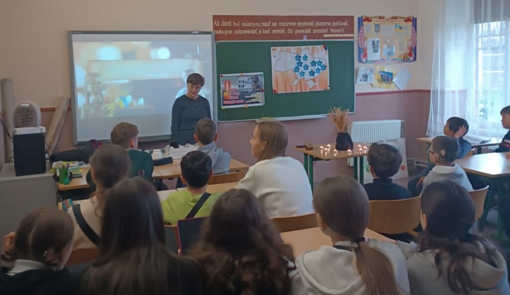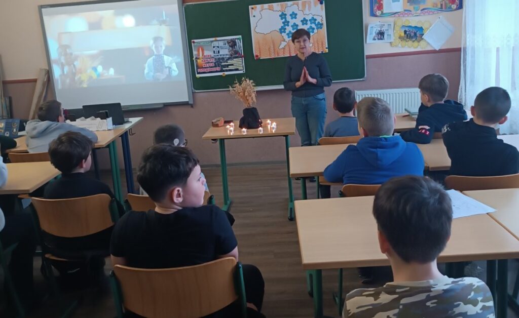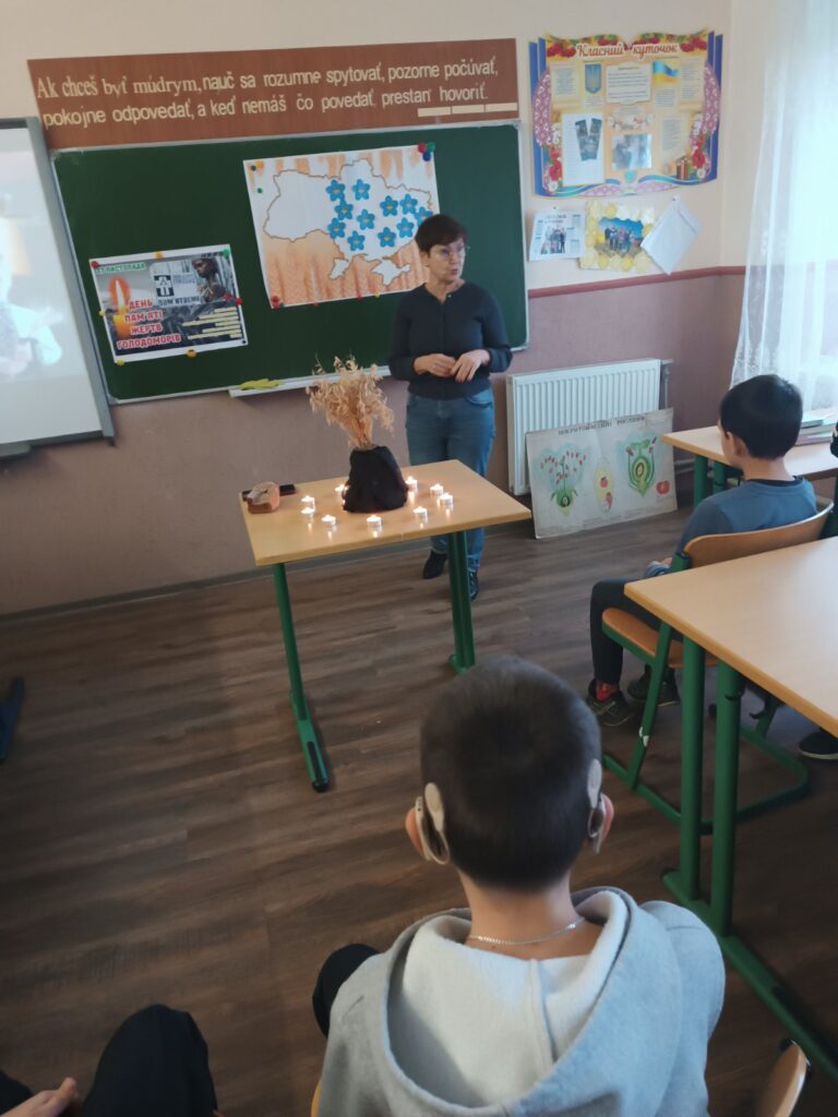 На уроці- реквіємі вчителька історії Надія Ласько розповіла учням 5- 7 класів про трагічні сторінки історії українського народу під час перебування у складі СРСР та провела паралелі із сьогоднішніми подіями на Сході України.