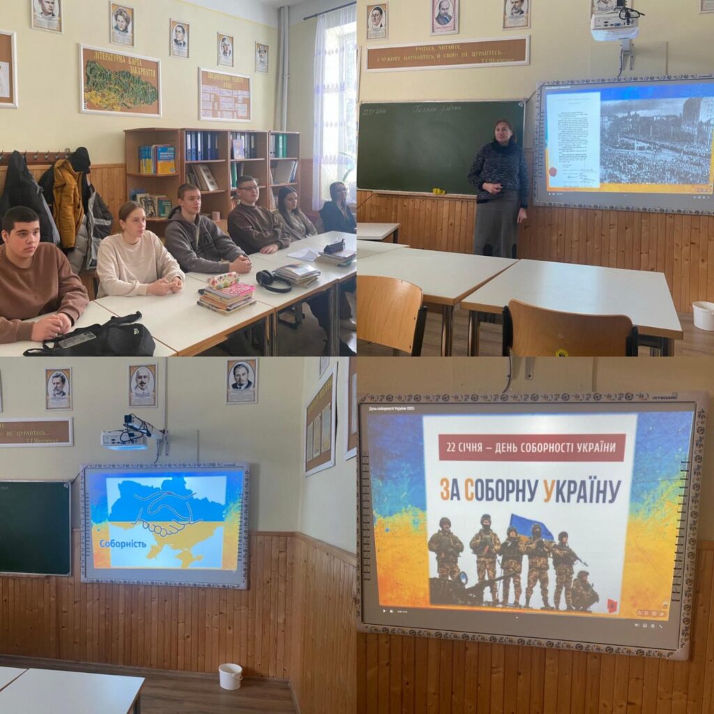 22 січня в 10 класі відбулася виховна година «У єдності наша сила». Учні подивилися фільм «День Соборності України», взяли участь у його обговоренні. Відбулася цікава дискусія з цього питання.