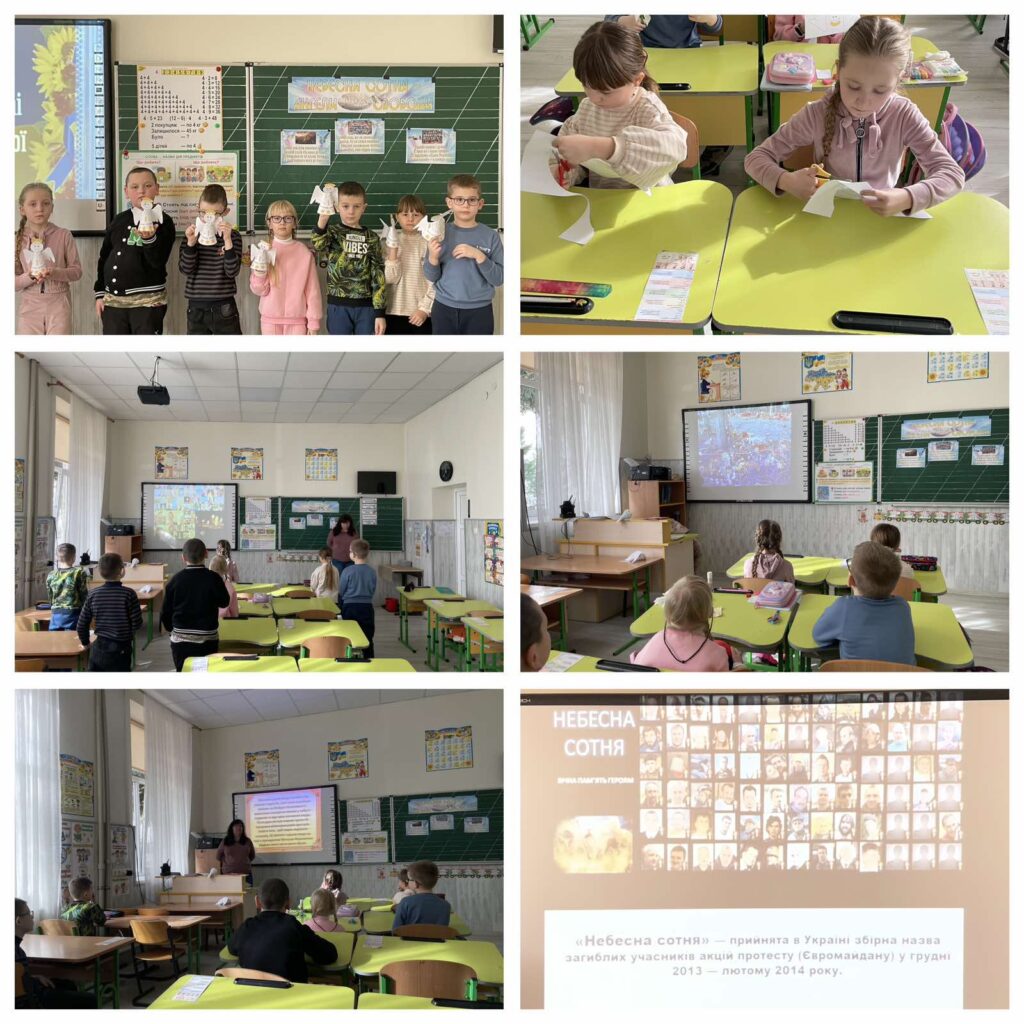 Діти переглянули тематичне відео, обговорили подвиг учасників Революції Гідності та усвідомили важливість єдності, мужності й любові до Батьківщини. На знак пошани школярі створили символічних ангелів пам’яті, вшановуючи тих, хто віддав життя за свободу України.